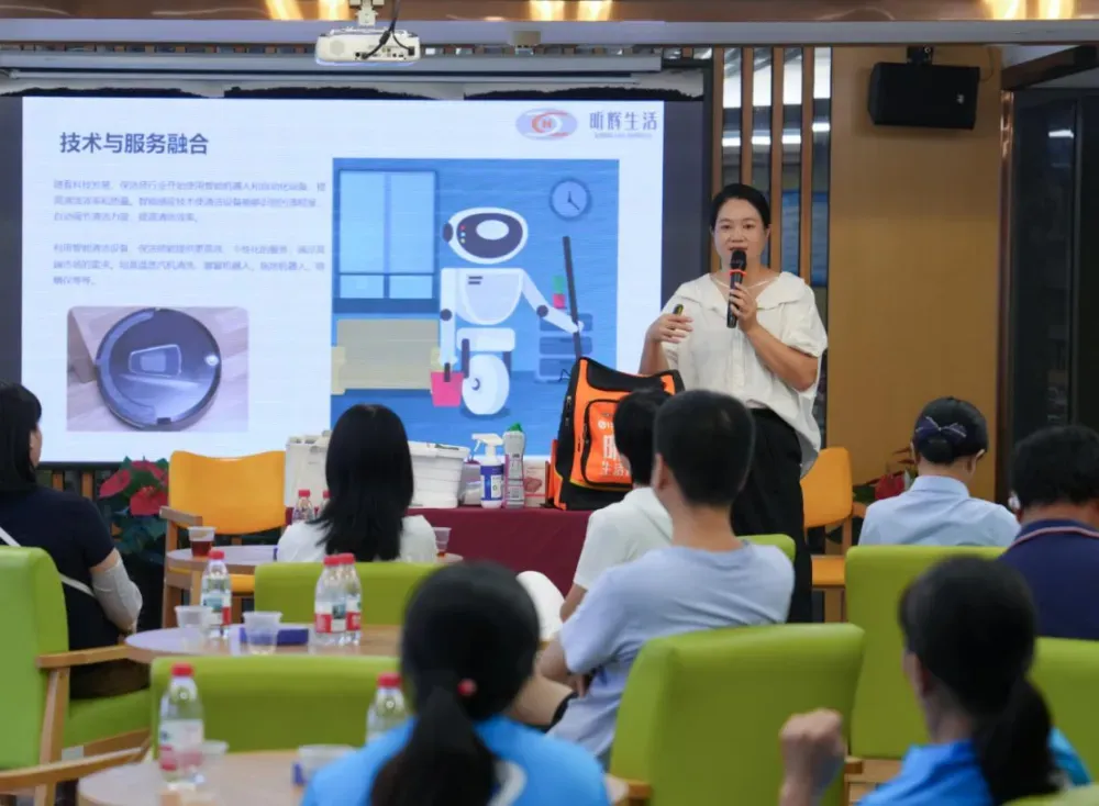 近日,第20期“南粤家政”直播,对话跨界转型入行、深耕保洁收纳培训领域5年的林燕纯老师天添盈,分享嘉宾自身从业经历,交流家政服务职业化、标准化、专业化的发展方向及对从业人员的素养要求。主题讲座围绕保洁师职业发展前景,聚焦家政保洁服务市场变化和需求特点,探讨保洁人员能力提升和服务规范的培养重点。技能展示环节,林老师现场介绍专业清洁工具的正确使用、不同材质家居器具的清洁流程,娴熟的实操技能让观众直观了解保洁服务的专业性和规范性。